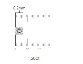 The diamond you have chosen weighs 1.50 carats and measures around 6.20×6.20×4.47mm. Remember, these measurements are only an estimation, as every diamond has unique attributes.