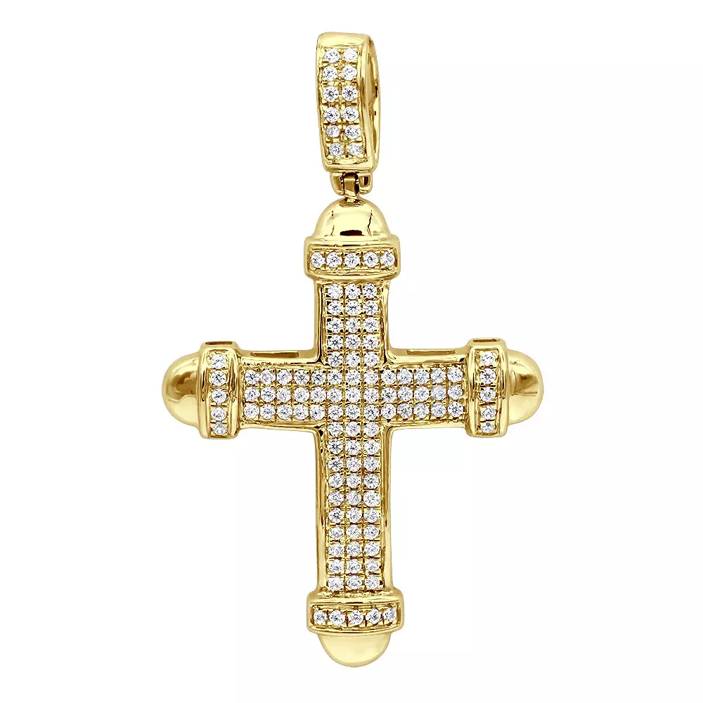 Luxurman Real Diamond Crosses Collection: this 14k gold Diamond Cross Pendant for Men & Women is made in solid 14k gold and decorated with genuine diamonds, featuring bottony (trefly) cross design with the ends of each arm crossed. A cross with the ends of the arms bottony or botonny, meaning “furnished with knobs or buttons”, or shaped like a trefoil?and so it is sometimes called a cross trefly. In the past this cross design was also called cross crosslet. This pendant is a unisex design at 1 1/2 inches (38mm) long with bail, 15/16in (23mm) wide, can be worn by both men and women and makes an amazing present that will be worn for a lifetime. You also can personalize this piece or check custom pendants we’ve already made and create your own design.