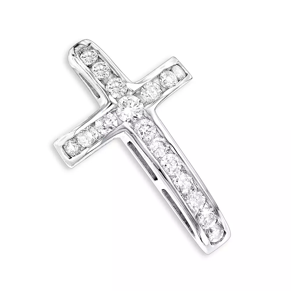 This Round Diamond Cross Pendant features 0.59 carats of round diamonds (17 diamonds). This diamond cross pendant by Luxurman is available in 14k yellow gold, rose gold, white gold, as well as 18k and Platinum as a custom order and can be customized with any color and quality diamonds. Please note: it will take us 3-5 business days to make this pendant for you so please plan accordingly. Please contact us at 212-398-3123 if your size or desired option is not listed. You also can personalize this piece or check custom pendants we’ve already made and create your own design.