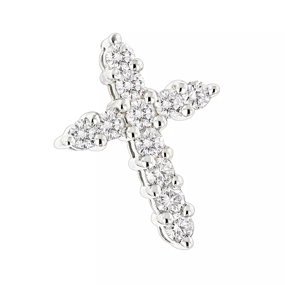 This Round Diamond Cross Pendant for Men and Women features a classy unisex design, decorated with 0.55 carats of round diamonds (11 sparkling diamonds). This diamond cross pendant is available in 14k yellow, rose, white gold, various sizes, and can be customized with any color and quality diamonds.