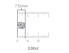 The diamond you have chosen weighs 2.00 carats and measures around 7.51×6.81×4.83mm. Remember, these measurements are only an estimation, as every diamond has unique attributes.