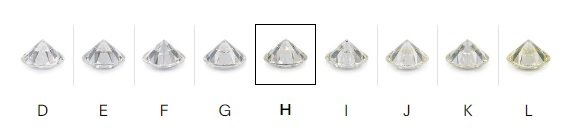 H coloured diamonds certificated by GIA are near colourless diamonds which still appear totally white or colourless if they are not compared side by side with higher colour grades. The H colour is generally considered to define the mark between colourless diamonds and slightly tinted diamonds, and as a result, the H colour is a very popular and good value for money option.
