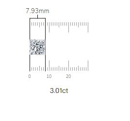 The diamond you have chosen weighs 3.01 carats and measures around 7.93×7.80×5.68mm. Remember, these measurements are only an estimation, as every diamond has unique attributes.