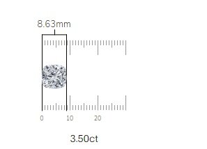 The diamond you have chosen weighs 3.50 carats and measures around 8.63×8.28×5.70mm. Remember, these measurements are only an estimation, as every diamond has unique attributes.