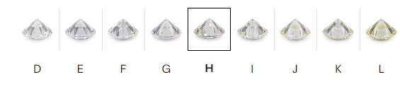 H coloured diamonds certificated by GIA are near colourless diamonds which still appear totally white or colourless if they are not compared side by side with higher colour grades. The H colour is generally considered to define the mark between colourless diamonds and slightly tinted diamonds, and as a result, the H colour is a very popular and good value for money option.