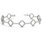 Seventy-four round cut diamonds are prong set in this abstract influenced diamond bracelet in 14k white gold. Approximately 7/8 carat total diamond weight and proudly made in the USA.