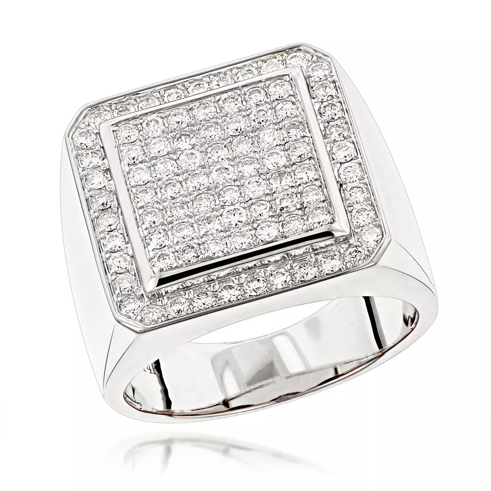 Designer Pinky Rings: This Men’s Diamond Gold Ring by Luxurman showcases 1.63 carats of dazzling round diamonds masterfully pave set in 14K gold base and makes a perfect diamond pinky ring. This diamond ring for men features gallery on the back for comfort wear and is available in 14K yellow gold, rose gold and white gold and will make a great present for your man!