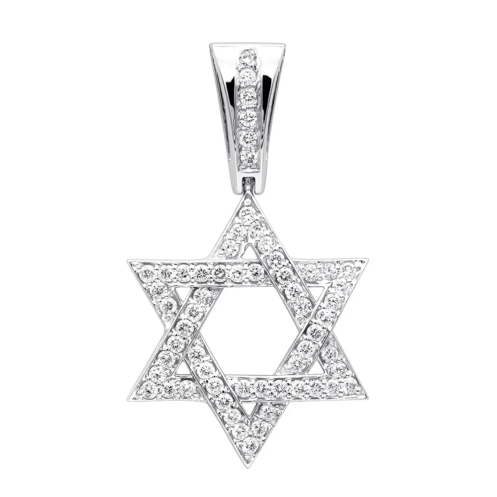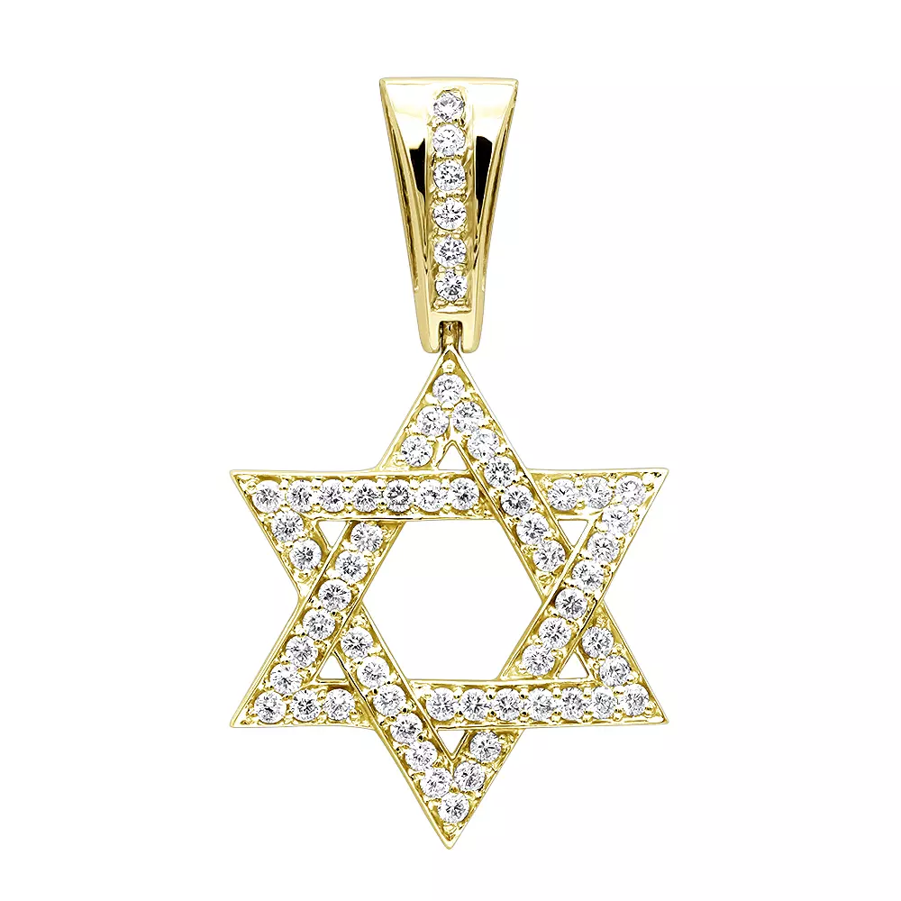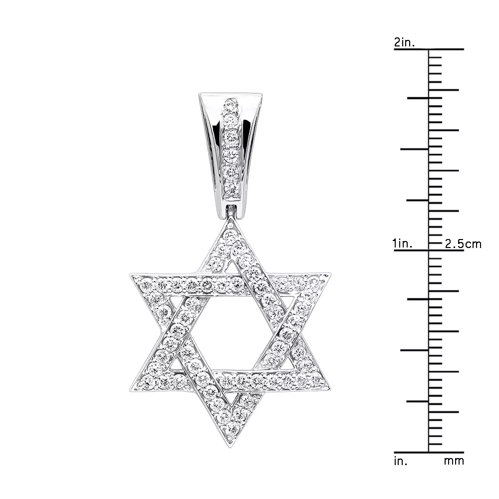Genuine Diamond Pendants! This 14K Gold Star of David Pendant showcases 1.44 ctw of sparkling round diamonds, each masterfully prong set in lustrous 14K gold. Featuring a highly polished gold finish, this diamond Star of David pendant is available in your choice of 14K white, yellow and rose gold. You also can personalize this piece or check custom pendants we’ve already made and create your own design.