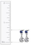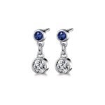 Beauty is often found in simplicity, just like these classic Diamond and sapphire drop earrings. Crafted from 14K white gold, they feature a deep blue 0.16 carat sapphire gemstone on top and a 0.35 carat round cut Diamond on the bottom of each earring in a bezel setting. Approximately 1 carat total weight.
