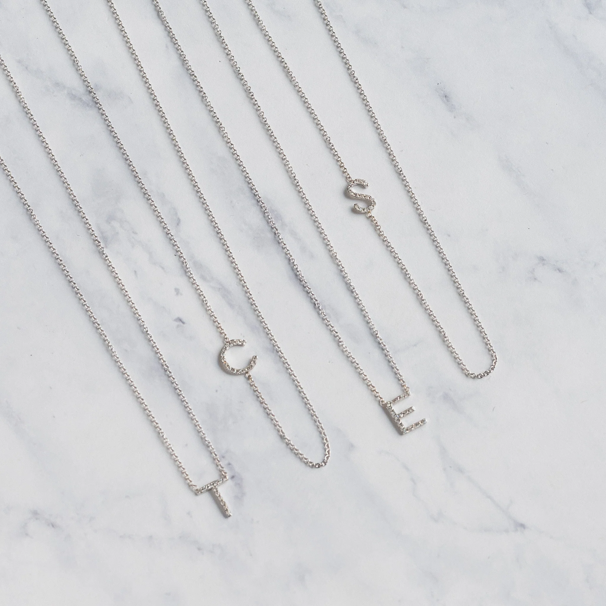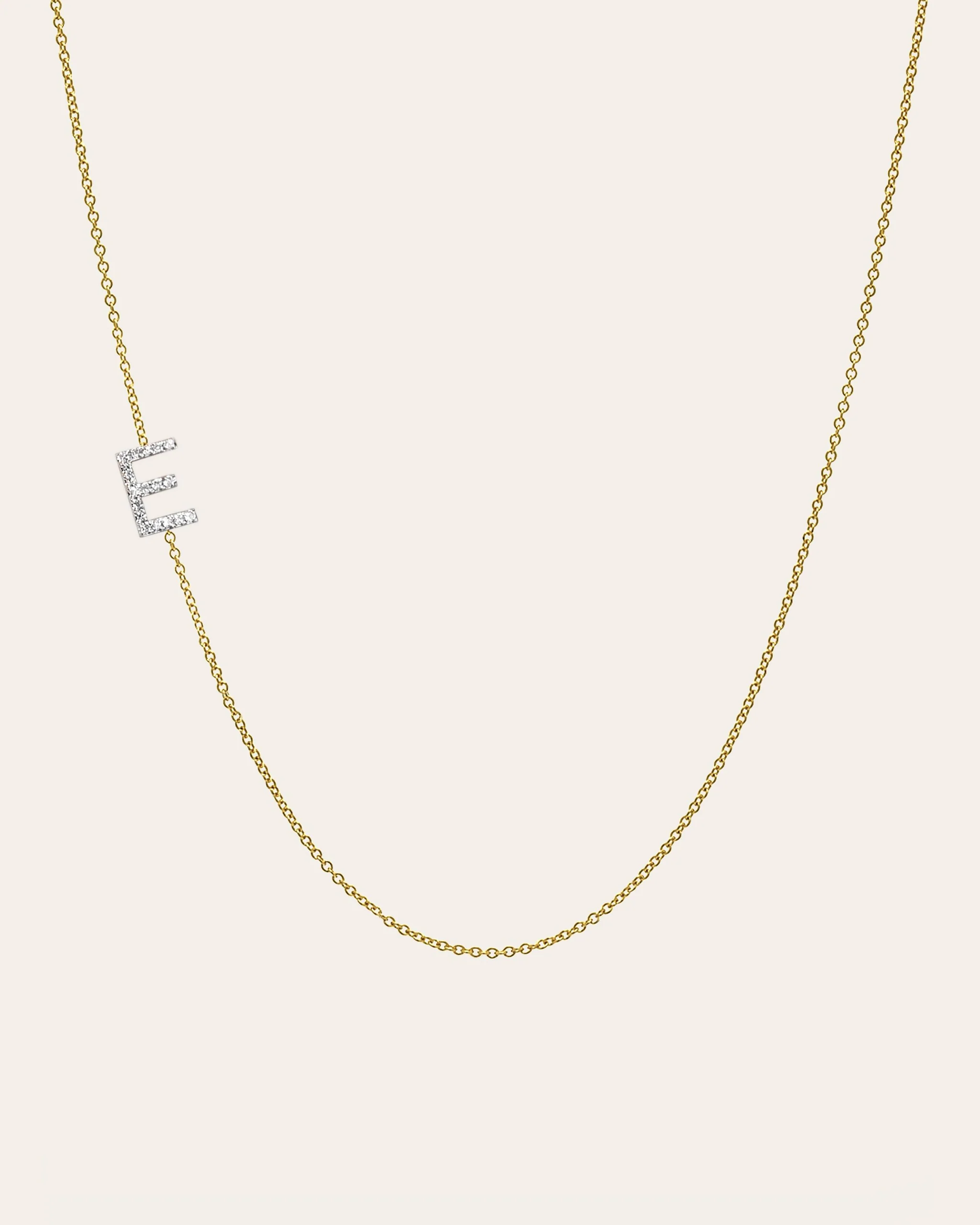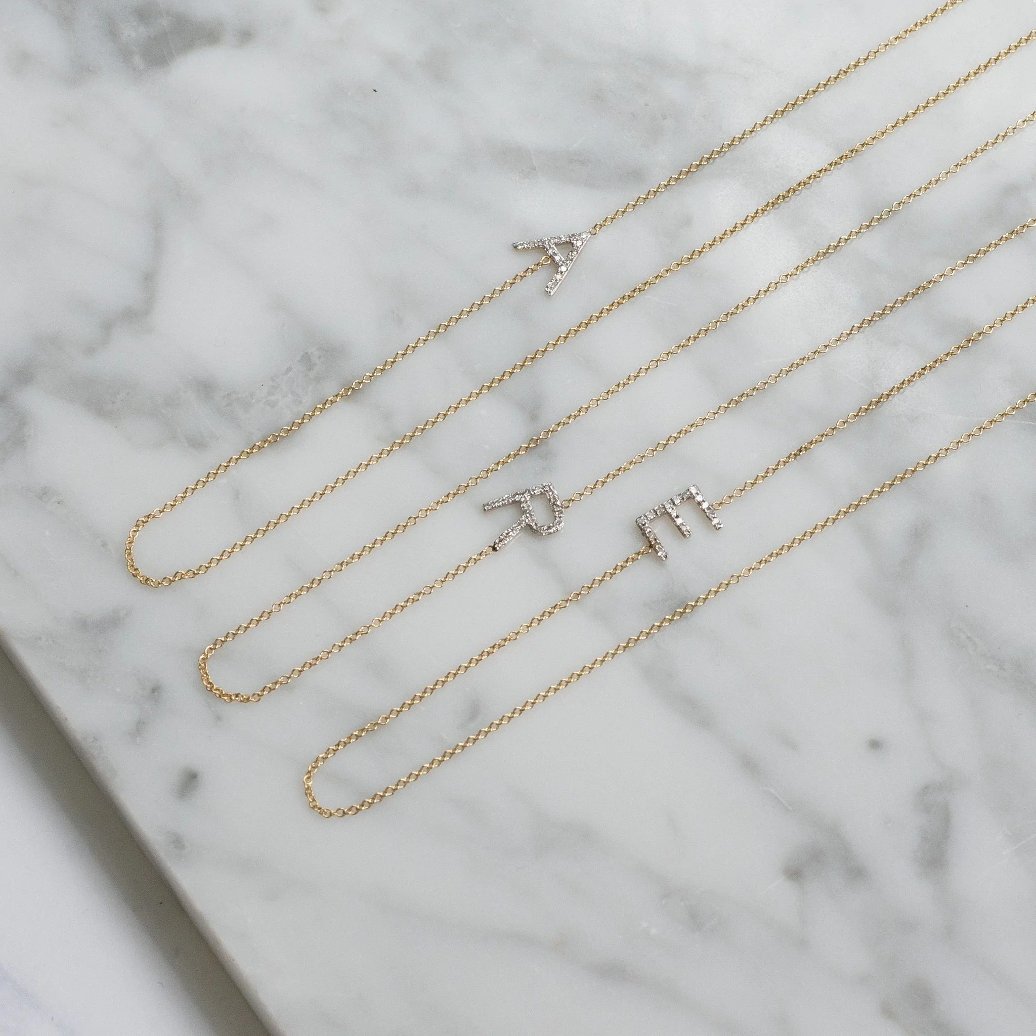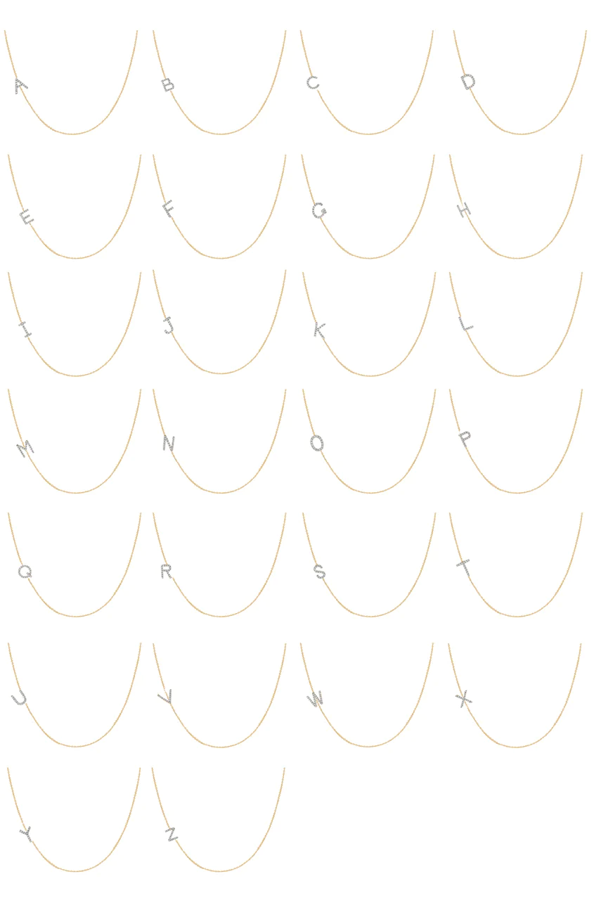 14k solid gold pave diamond asymmetrical initial on a dainty chain necklace with the length of your choice. Available in 14k white, yellow and rose gold. A delicate and effortlessly chic necklace, wear it up or down, day or night, it will be your new favorite necklace!
