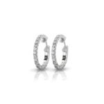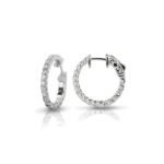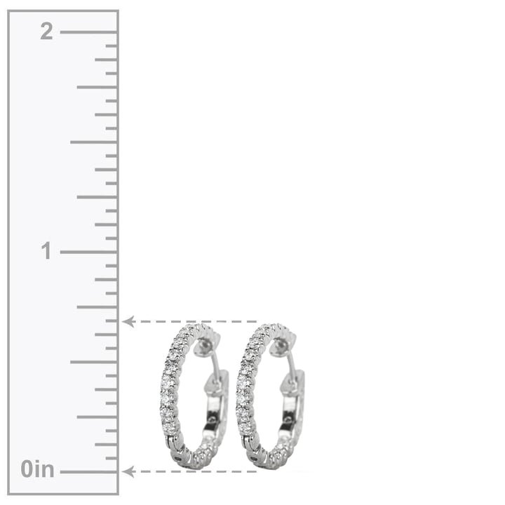 These small Diamond hoop earrings in 14k white gold feature 17 round cut Diamonds in the inside and outside of each hoop in a u-prong setting. Approximately 1 carat total Diamond weight and proudly made in the USA.