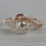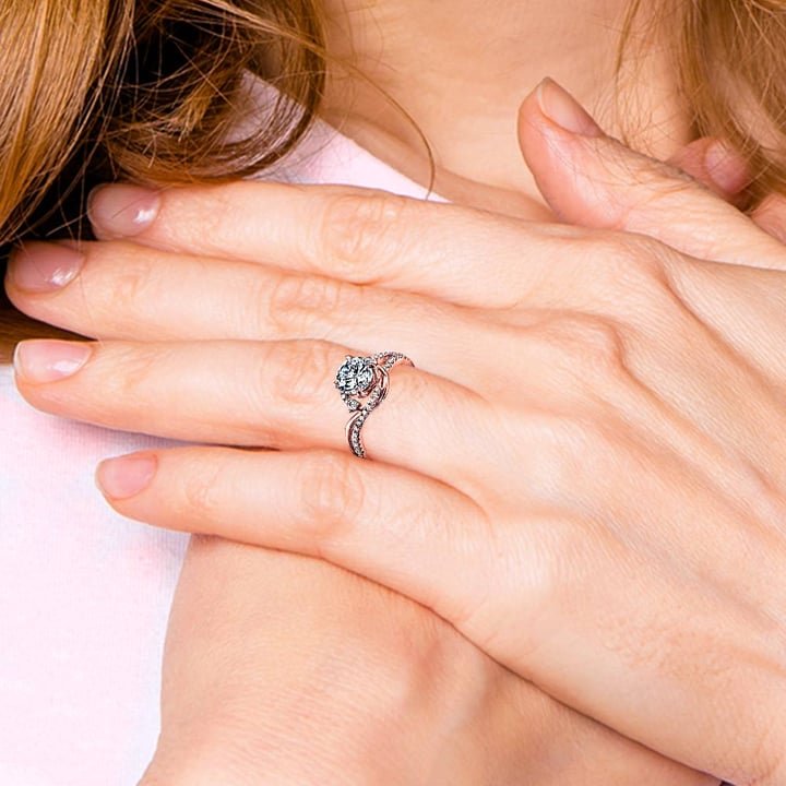 Parade Design’s R3525 split shank engagement ring from the Hemera Bridal collection features elegant rose gold artfully crafted into sweeping curves and securing your choice of center diamond (not included) in a signature Lyria Crown. Fourty-one round diamonds decorate the design for approximately 1/4 carat total diamond weight.