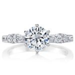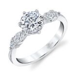 Five stones create a timeless structure while the pear diamond accents add intrigue to style R4680, a classic diamond engagement ring in white gold. A six-prong mount is sitting ready to be graced with your choice of center diamond.