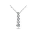 Proudly made in the USA, this Diamond journey pendant features five round cut graduated Diamonds (0.03ct – 0.25ct) that are prong set with milgrain detailing and suspended by a white gold cable-link chain. Approximately 1/2 carat total weight.