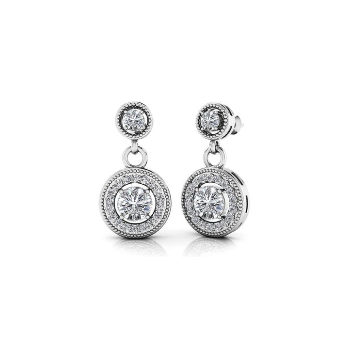 Home Jewellery Diamond Earrings Milgrain Halo Dangle Diamond Earrings In White Gold