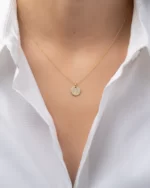 Beautifully handcrafted pleated disc with diamond bezel center hanging on a dainty gold chain, 14k solid gold, chic and timeless, wear it by itself or layered, day or night.