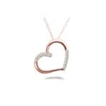 Proudly made in the USA, this unique rose gold Diamond heart pendant necklace features twelve round cut Diamonds that are pave set on the top and bottom sections, suspended on a rose gold cable-link chain. Approximately 1/4 carat total weight.
