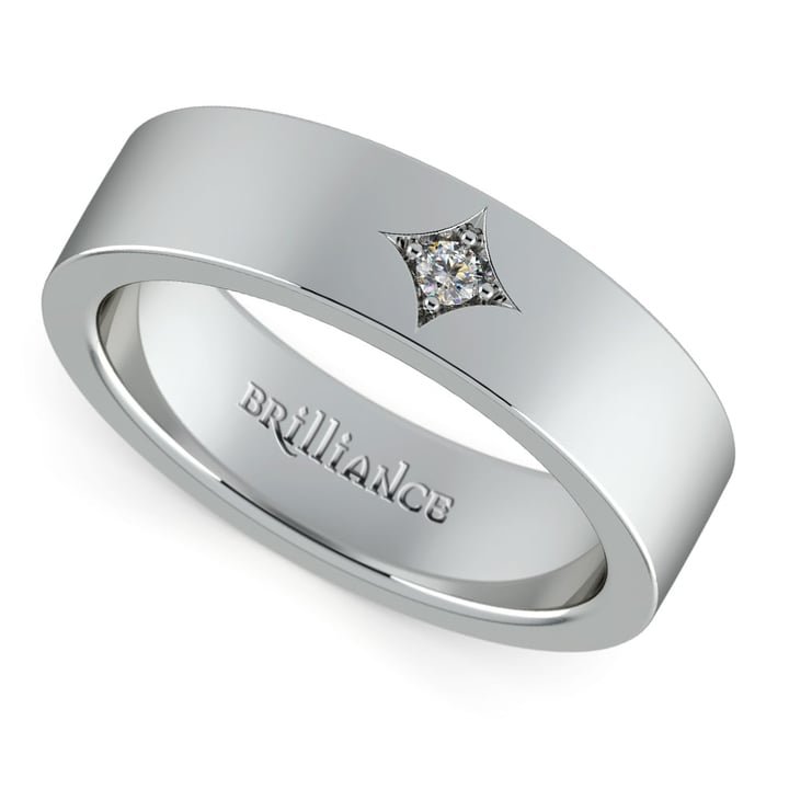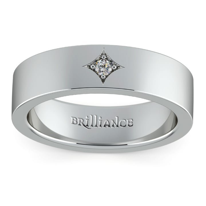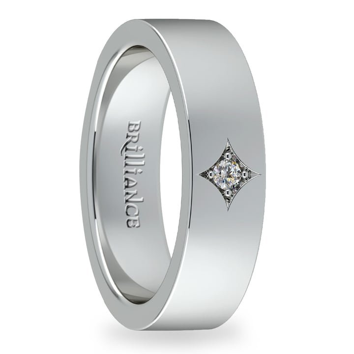 Star – Diamond Solitaire Mens Wedding Band In White Gold (6mm)