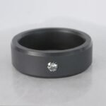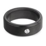 Elysium is the ultimate expression of strength and luxury, as seen in this mens elysium ring with inset diamond. The Elysium technology uses immense heat and pressure to fuze millions of diamond dust crystals into a solid diamond ring. The resulting black diamond material is so durable that it can’t be scratched (except by another diamond), lasts forever, and maintains its finish without fading. Named for the Greek god of war, the Ares Elysium series diamond dust ring features strong lines and beveled edges. Modern and edgy, this Ares Elysium mens engagement ring features an 8mm beveled band with a white diamond inset and matte finish. Your Elysium ring will be created specifically for your order and include its own unique serial number that can be registered on the Elysium website.