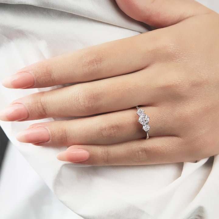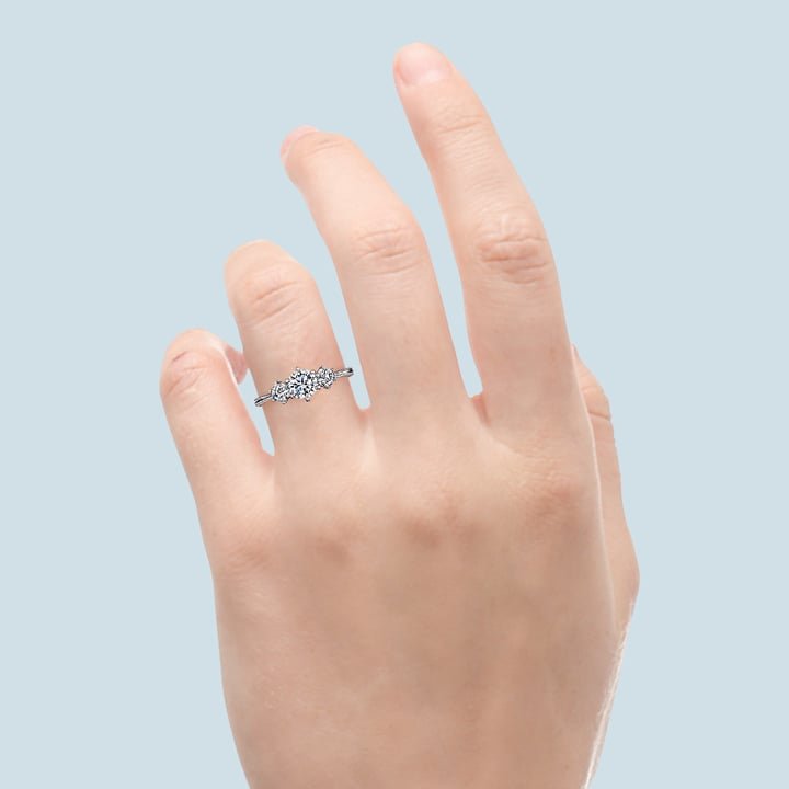 A classic three-stone diamond engagement ring featuring subtle milgrain detailing to add elegance and refinement to this white gold setting, two gleaming brilliant diamonds are perfectly poised to receive your choice of the center stone. Style R4687 is part of Parade’s New Classic Bridal collection.