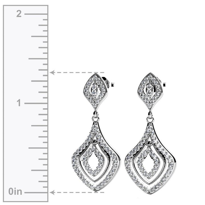 Enjoy the decadence of these vintage-inspired Diamond dangle earrings in 14K white gold. They are truly a wonder with 58 round cut Diamonds in each earring, for a total of 116 Diamonds combining for 3/4 carat total Diamond weight.