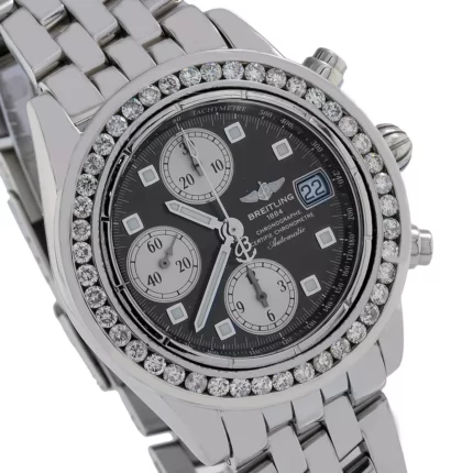 Men’s Diamond Watch Breitling Chronomat 39 mm Black Dial Stainless Steel 2ct Diamonds
