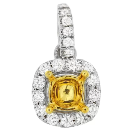 DSH Jewels 14YW@1.4 18RD@0.33 6MM TWO TONE CUSHION HALO PENDANT