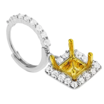 DSH Jewels 14YW@5.0 48RD2@1.10 6X6MM TWO TONE PRINCESS DANGLING EARRINGS
